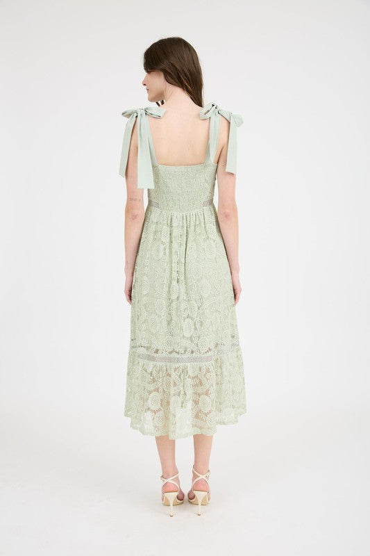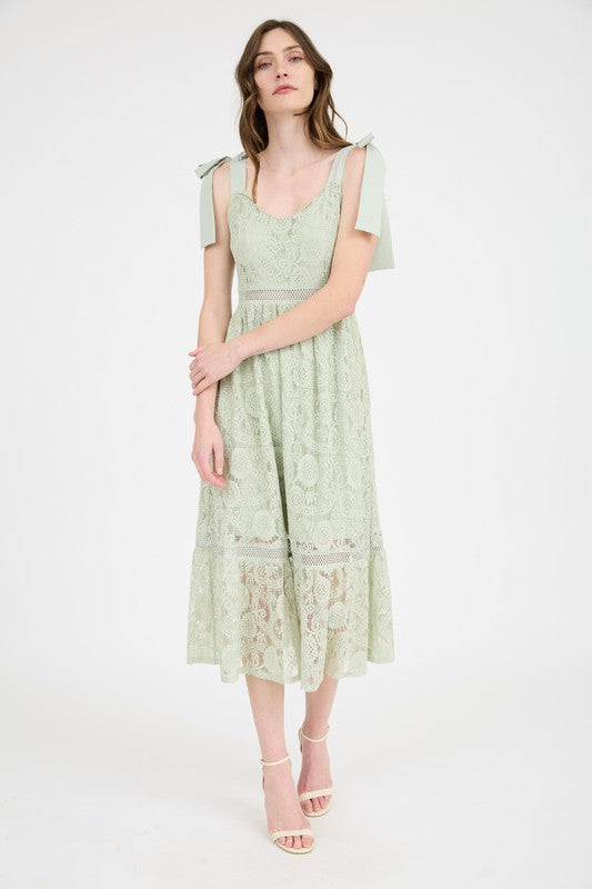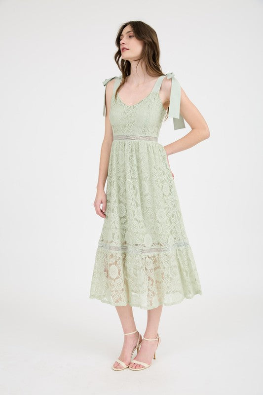 Blu Pepper Lace Toe Strap Sheer Trim Sleeveless Midi Dress, Light Sage