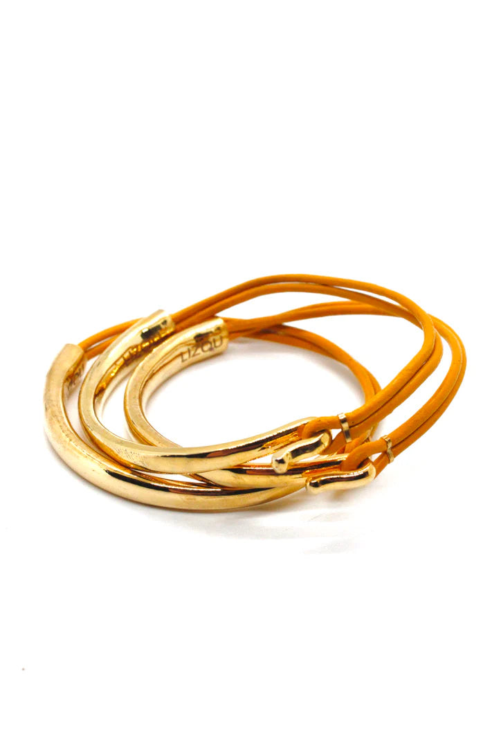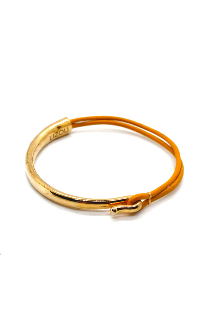 Lizou Leather & Gold Bracelet, Yellow