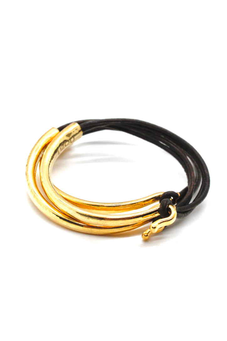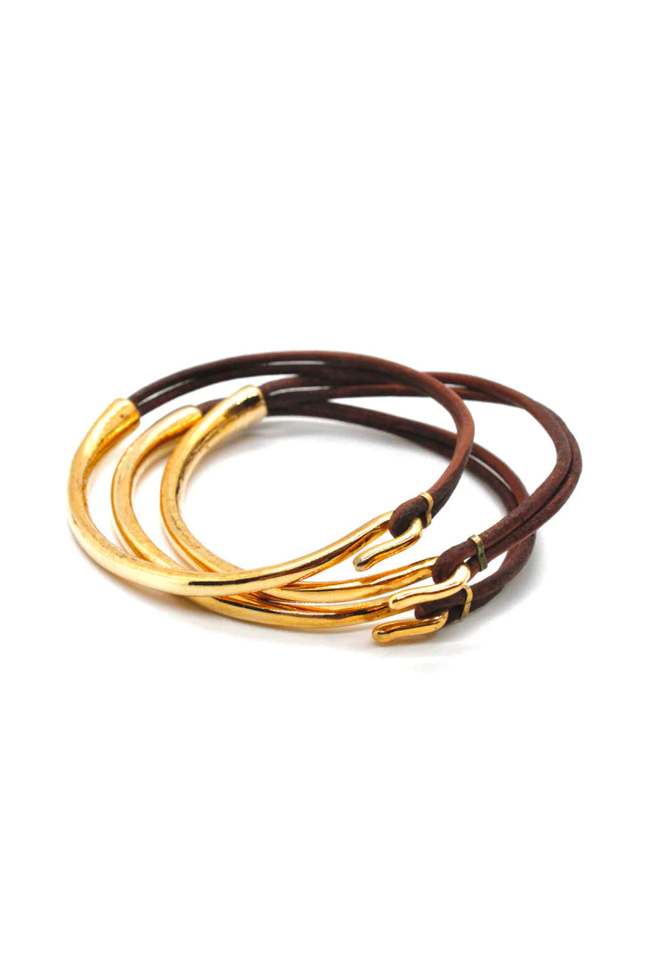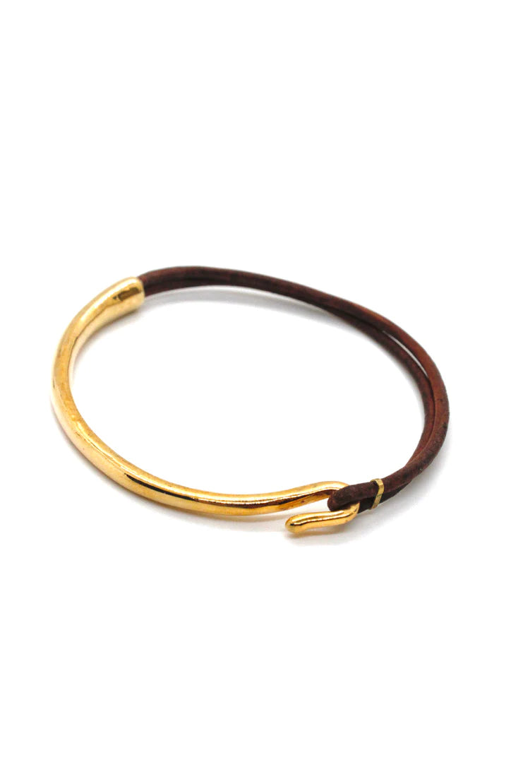 Lizou Leather & Gold Bracelet, Natural Dark Brown
