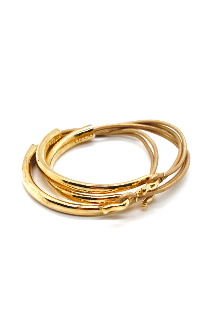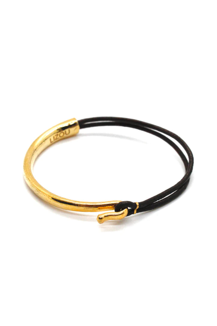 Lizou Leather & Gold Bracelet, Gold