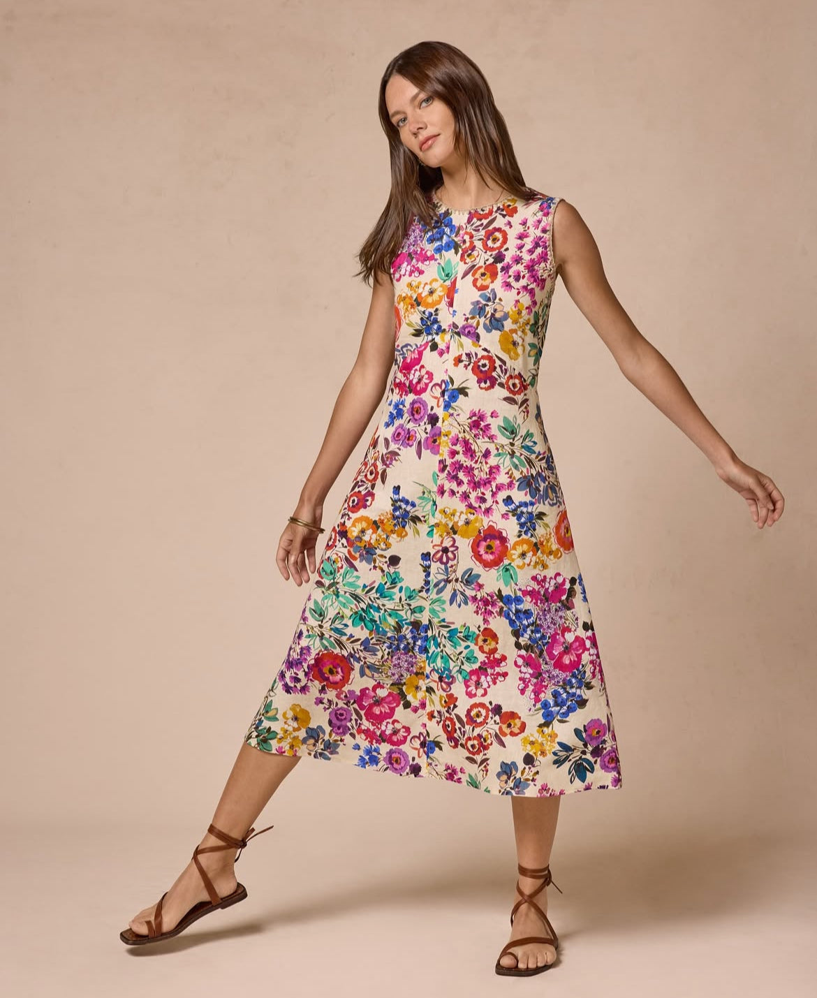 Johnny Was Linen Chevron Tank Dress, Evalon