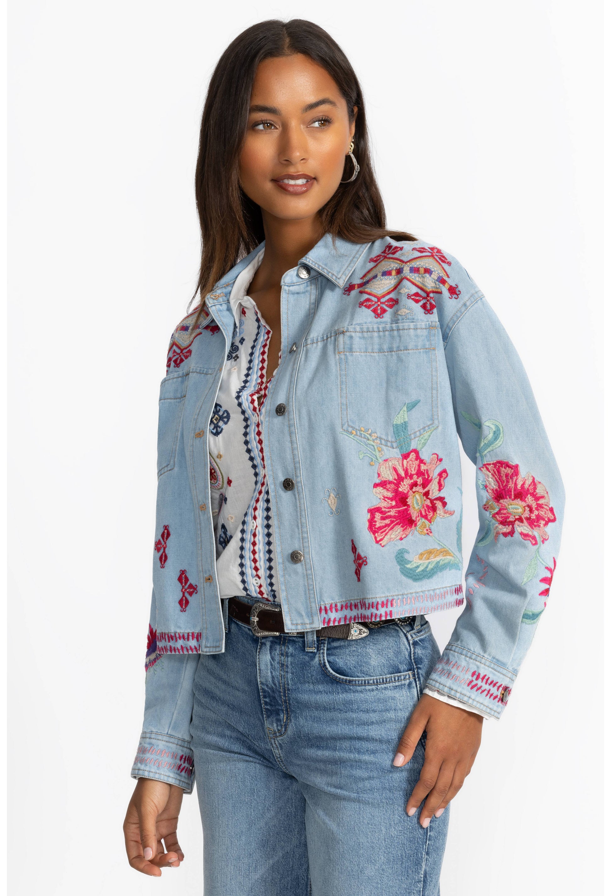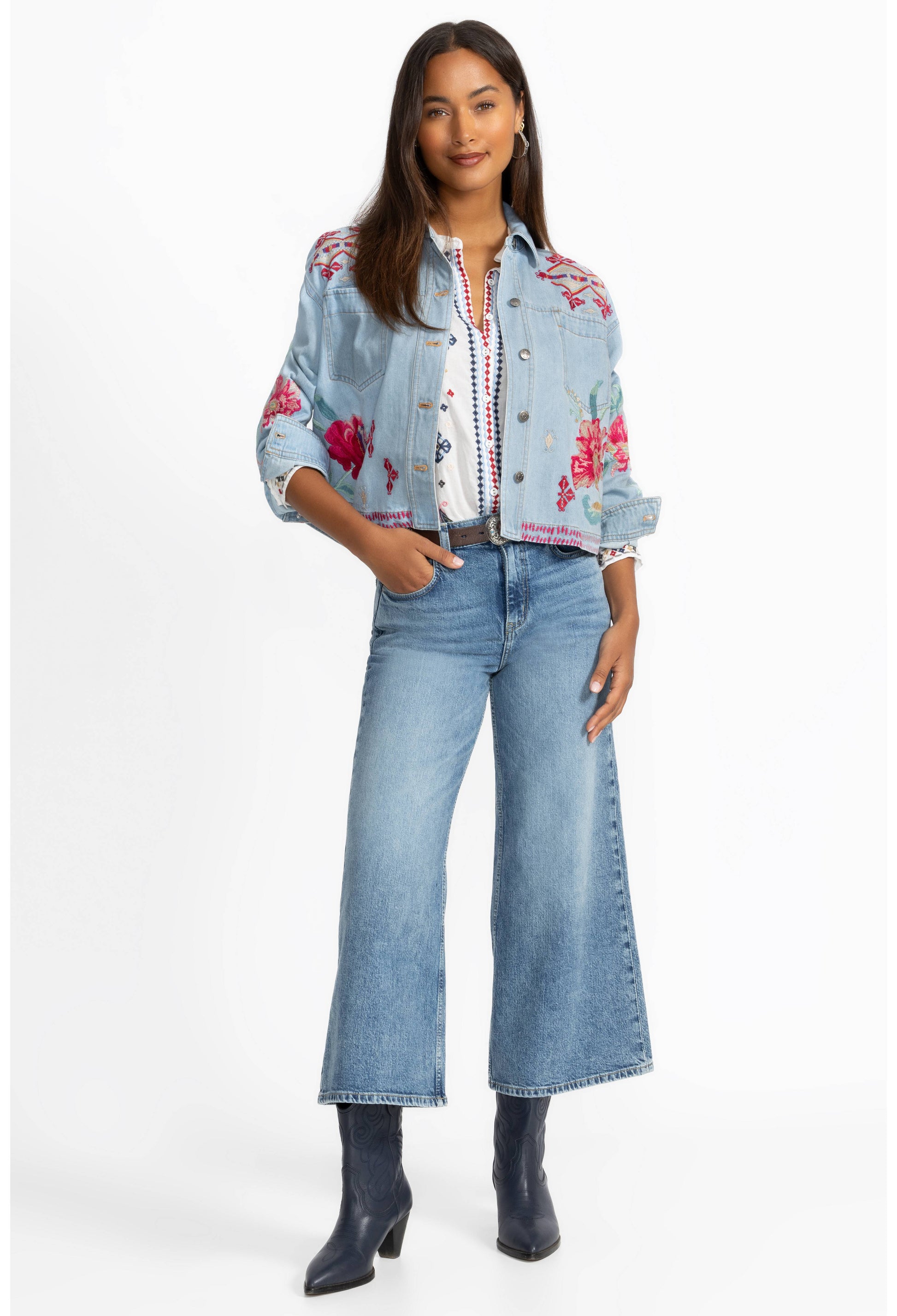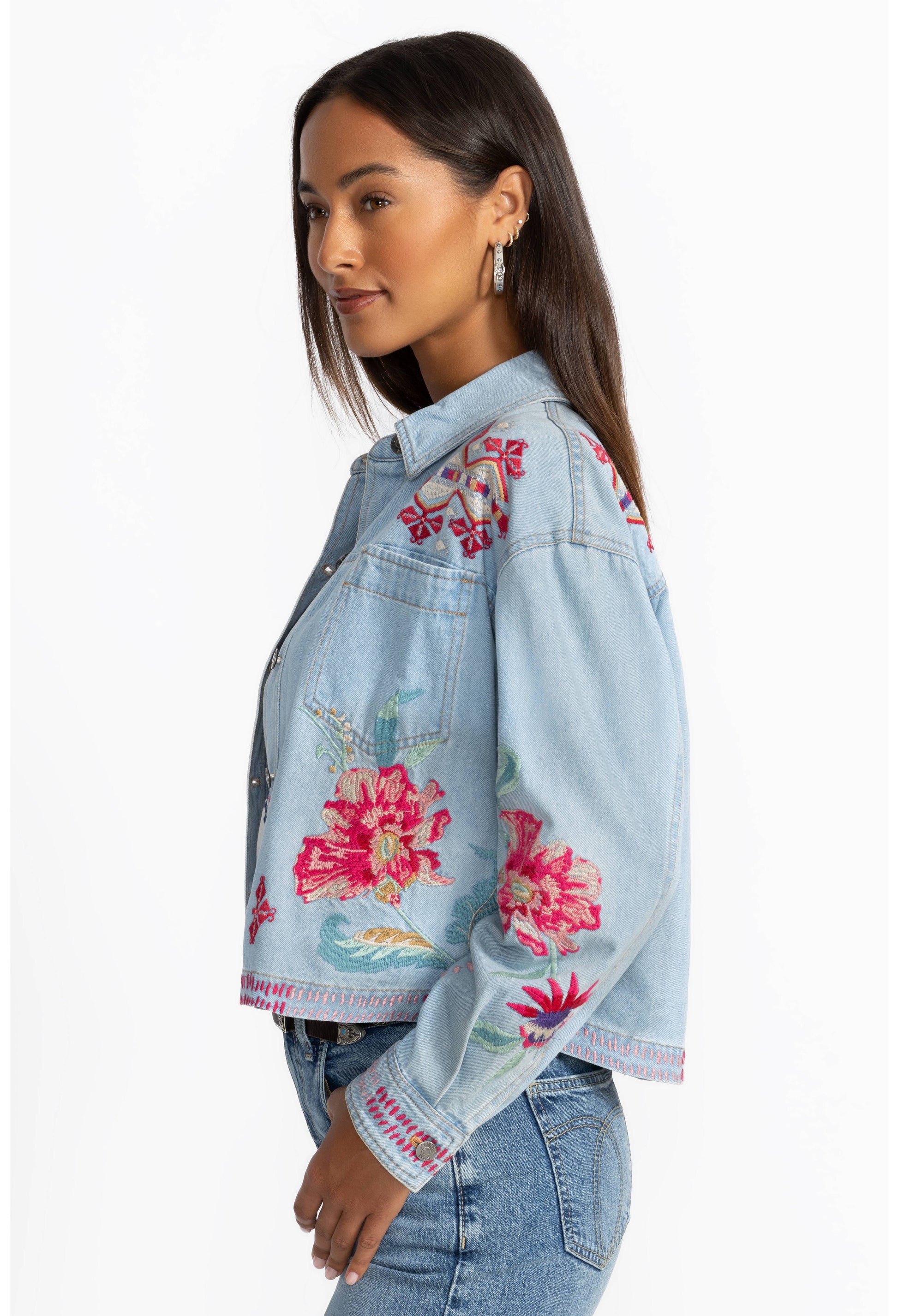Johnny Was Tallula Cropped Denim Jacket Denim Blue