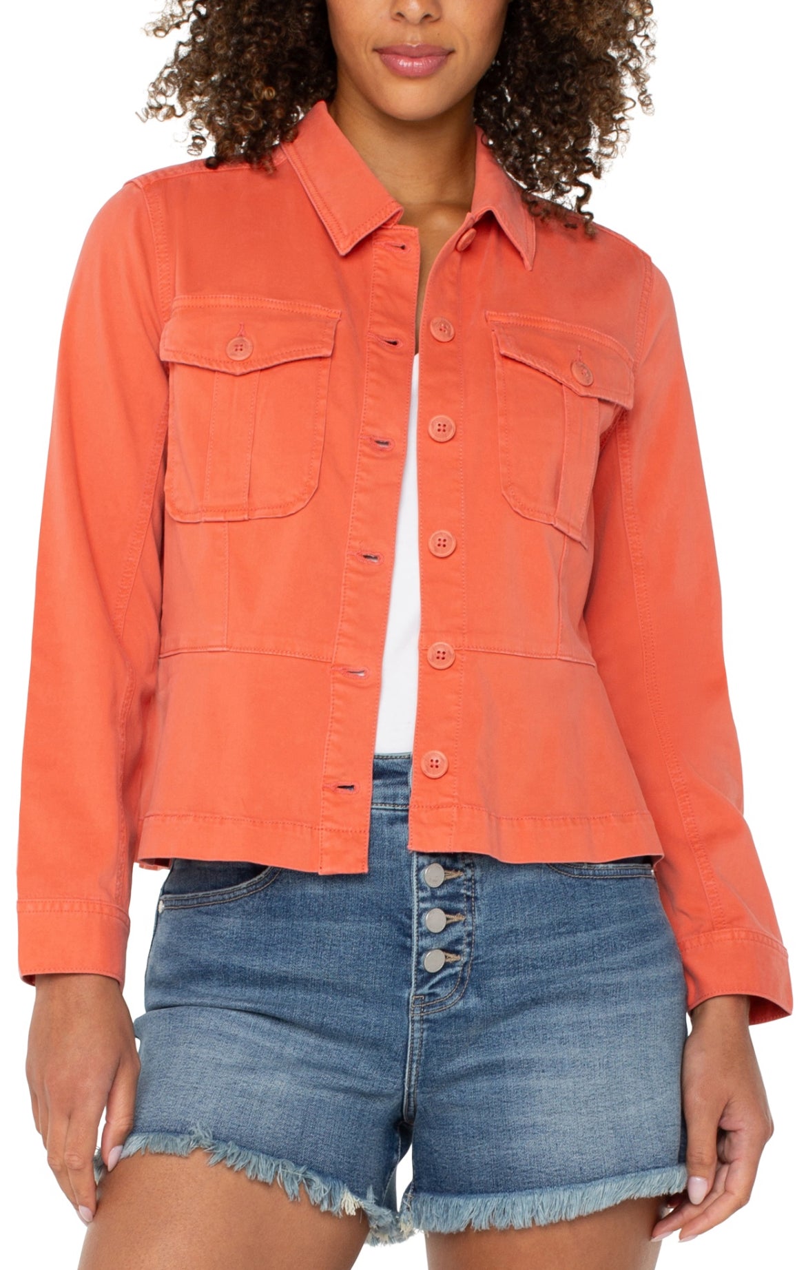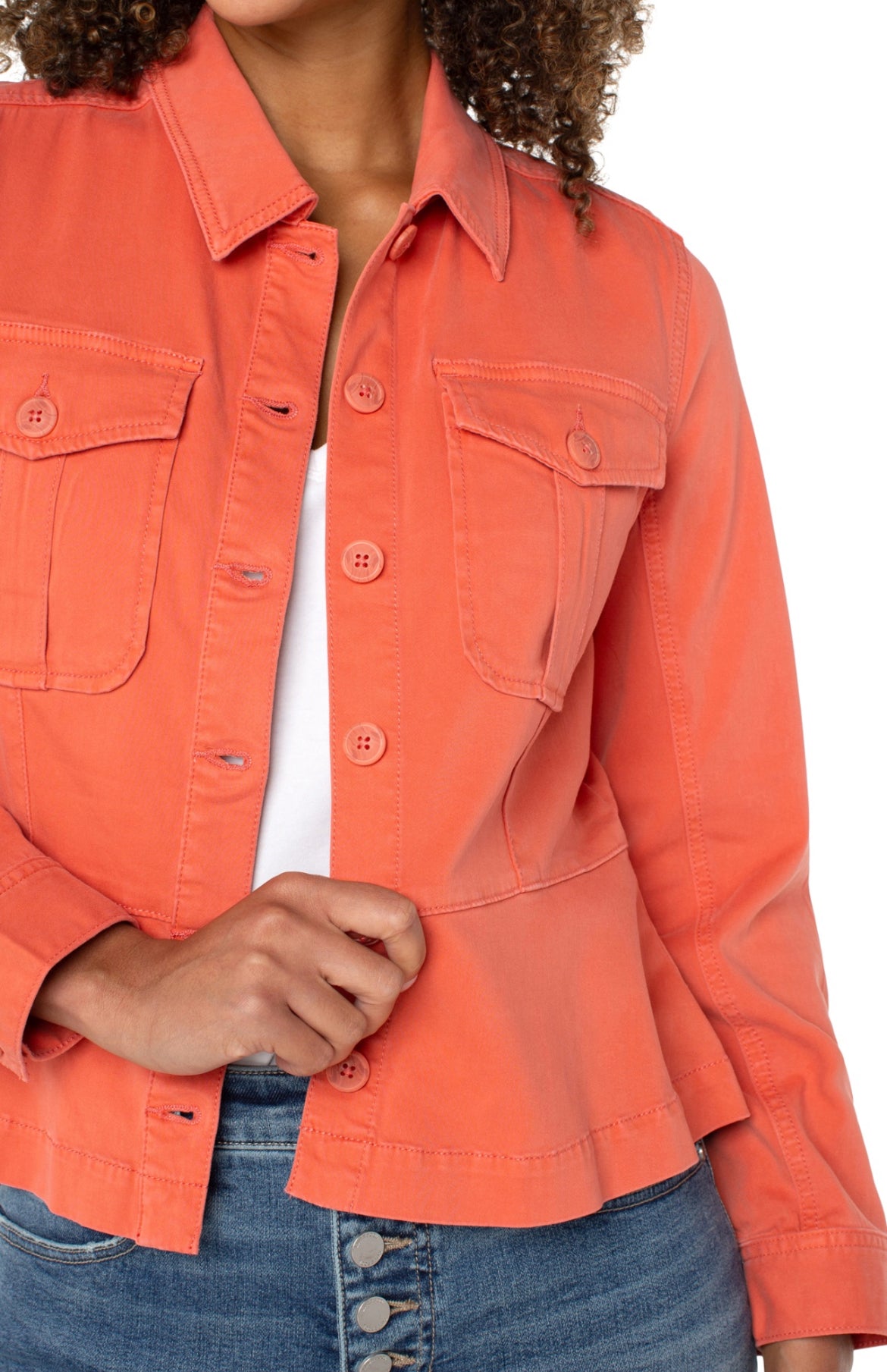 Sold outLiverpool Trucker Jacket With Peplum Hem, Papaya