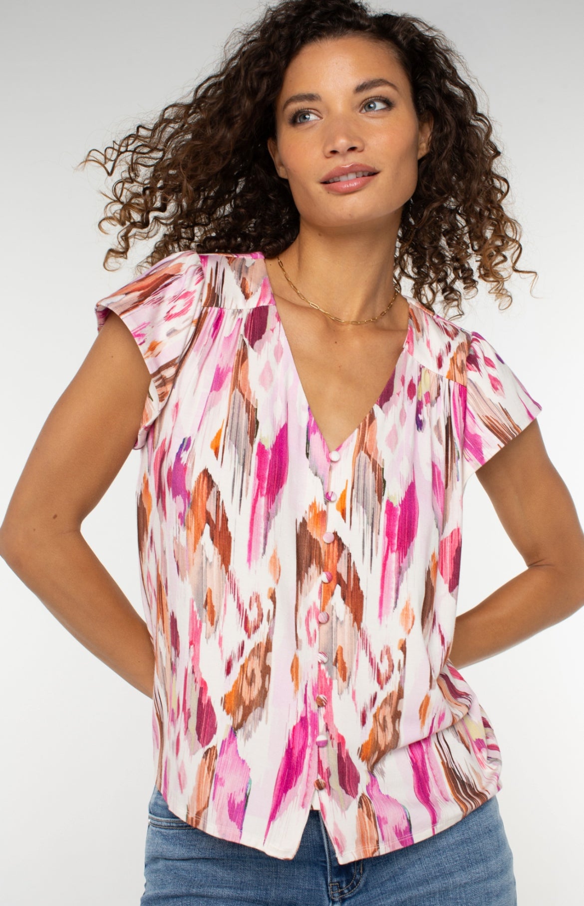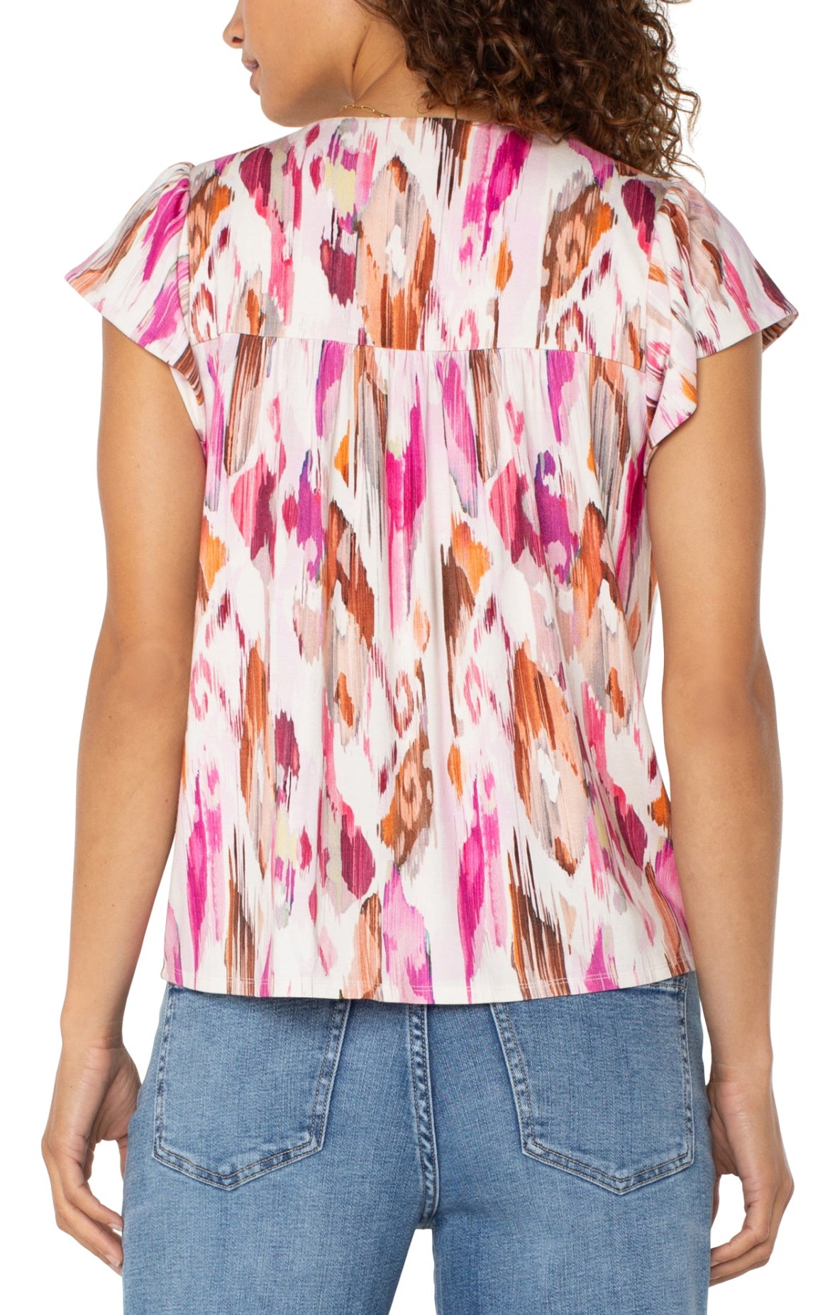Sold outLiverpool Flutter Sleeve Button Front Knit Top, Pink Painter Ikat