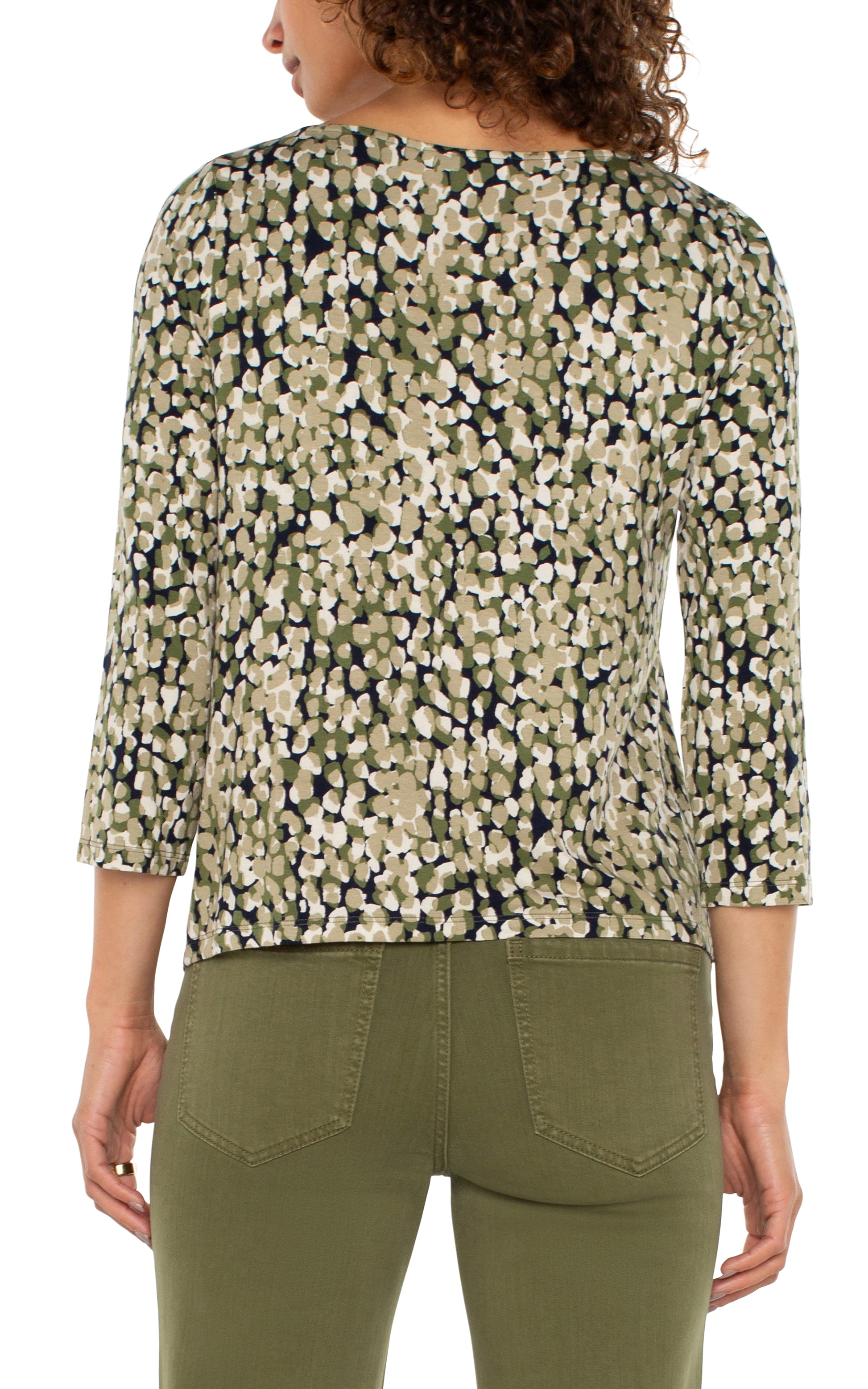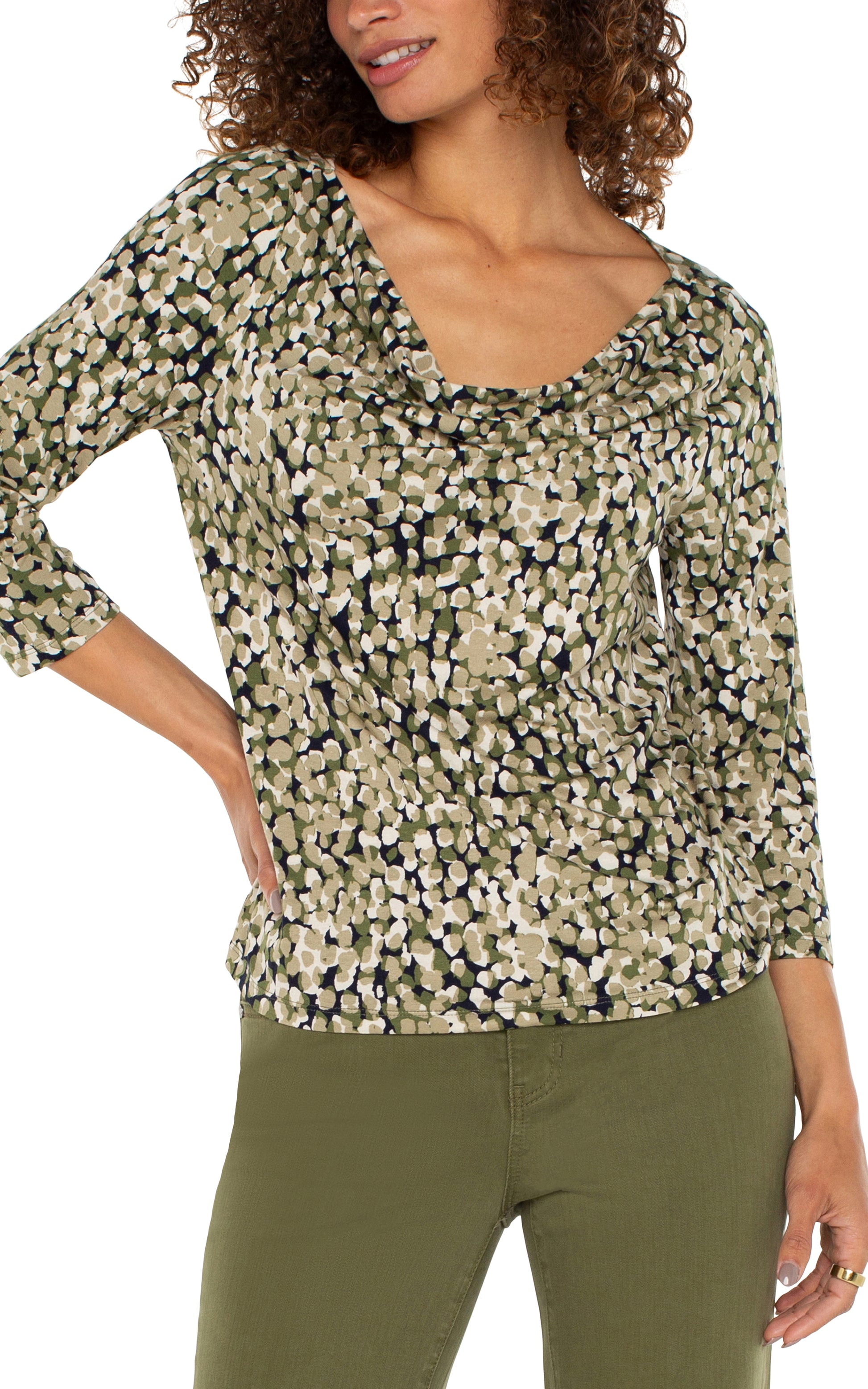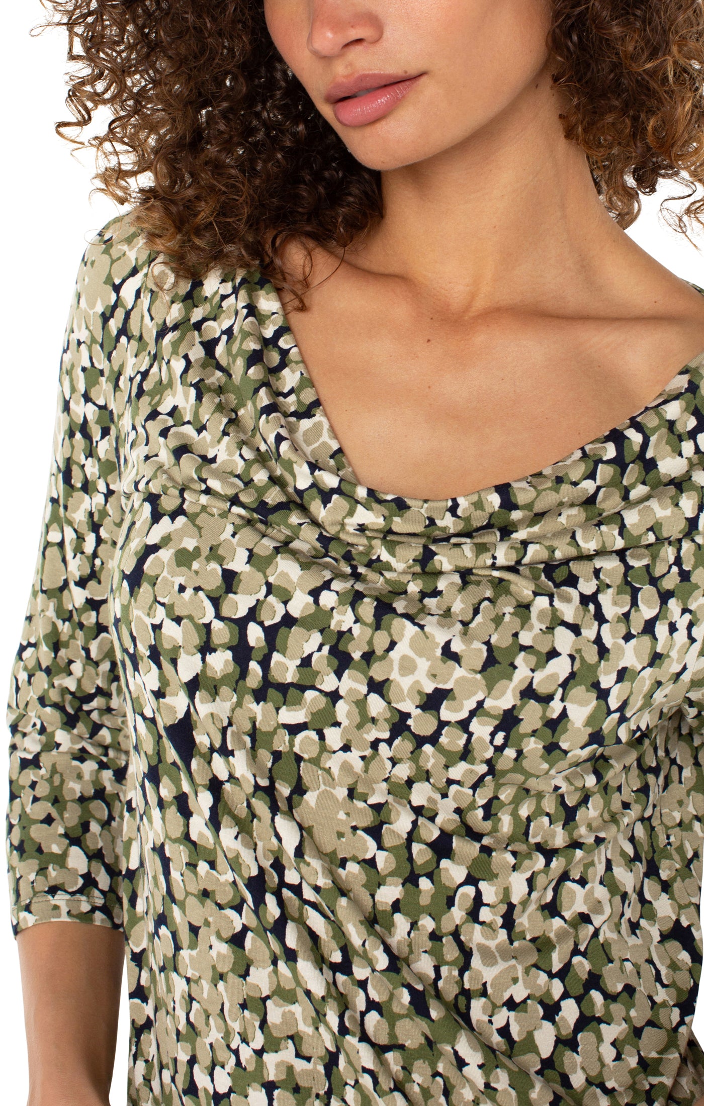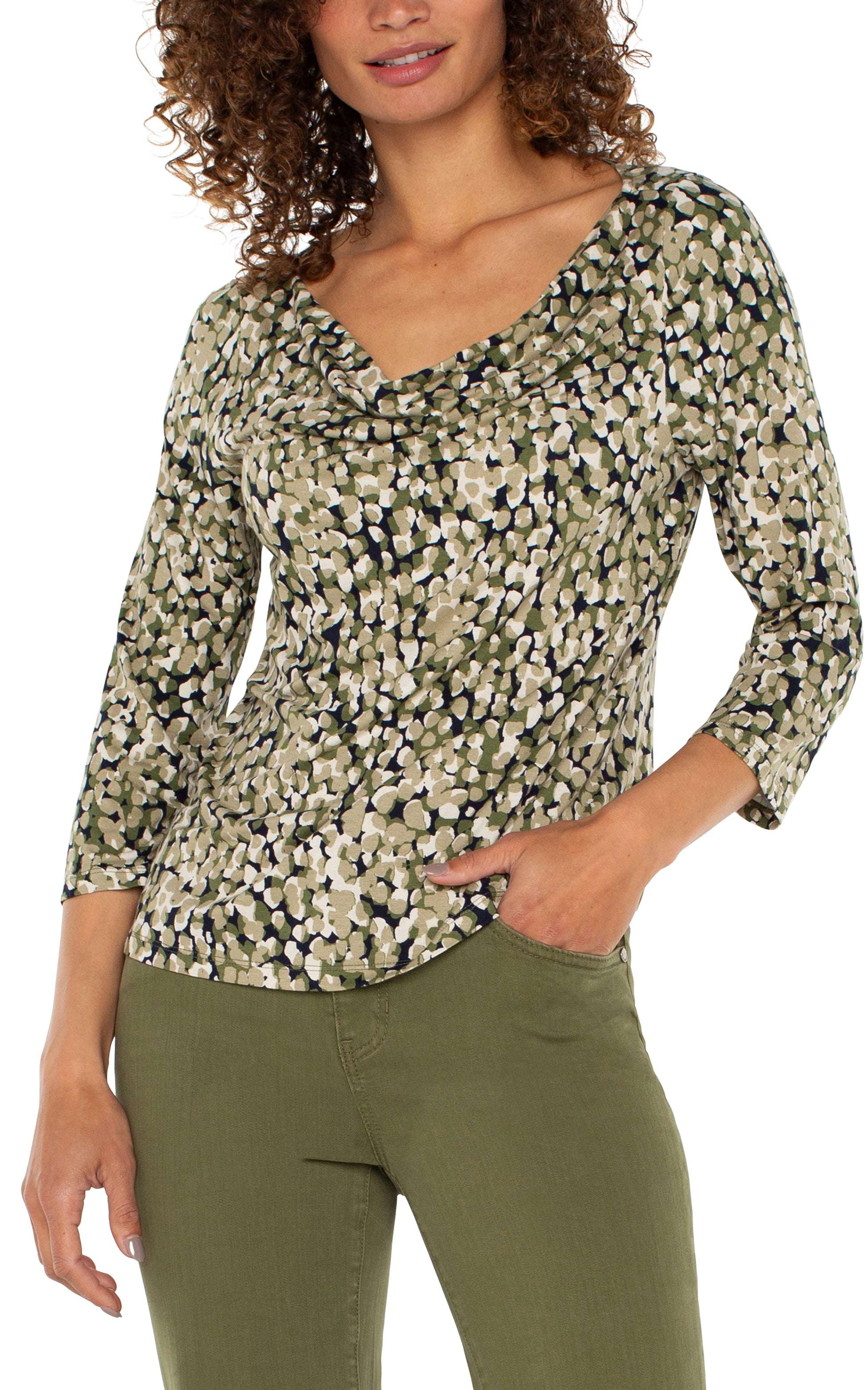 Sold outLiverpool 3/4 Sleeve Draped Neck Knit Top Olive Camo