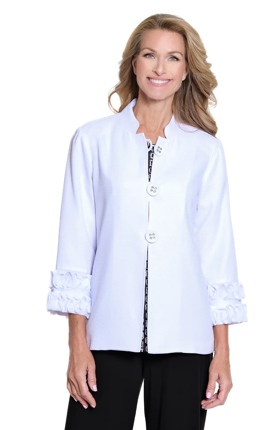 Multiples 3/4 Sleeve Stand Collar Loop & Button Closure Lined Jacket, Multi