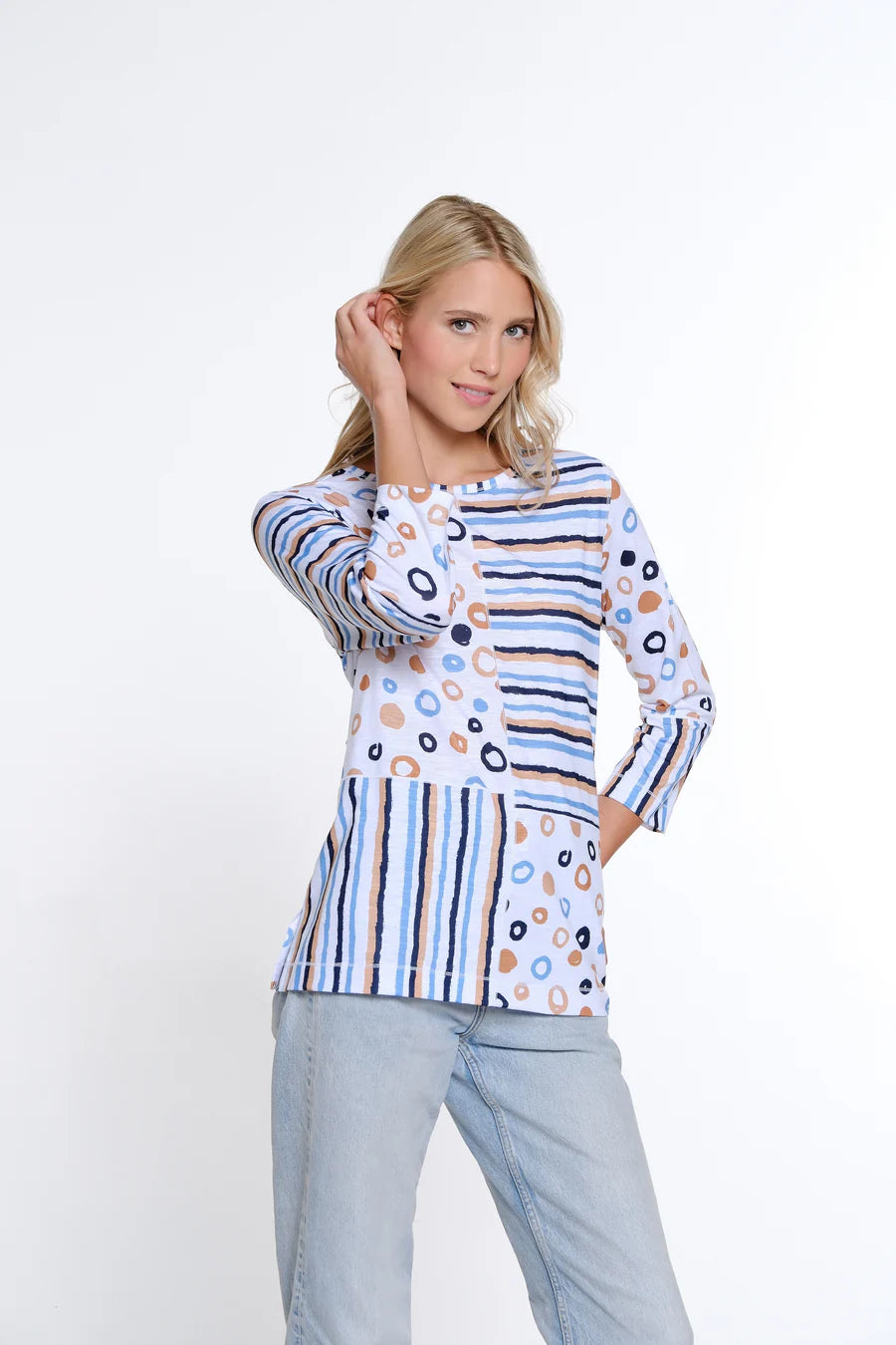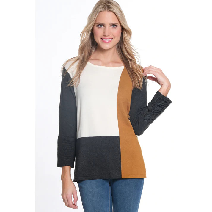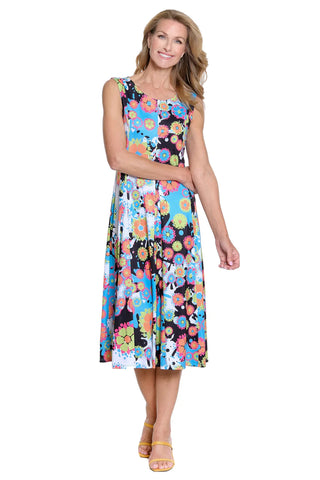 Multiples 3/4 Sleeve Multi Panel Scoop Neck Dress, Multi