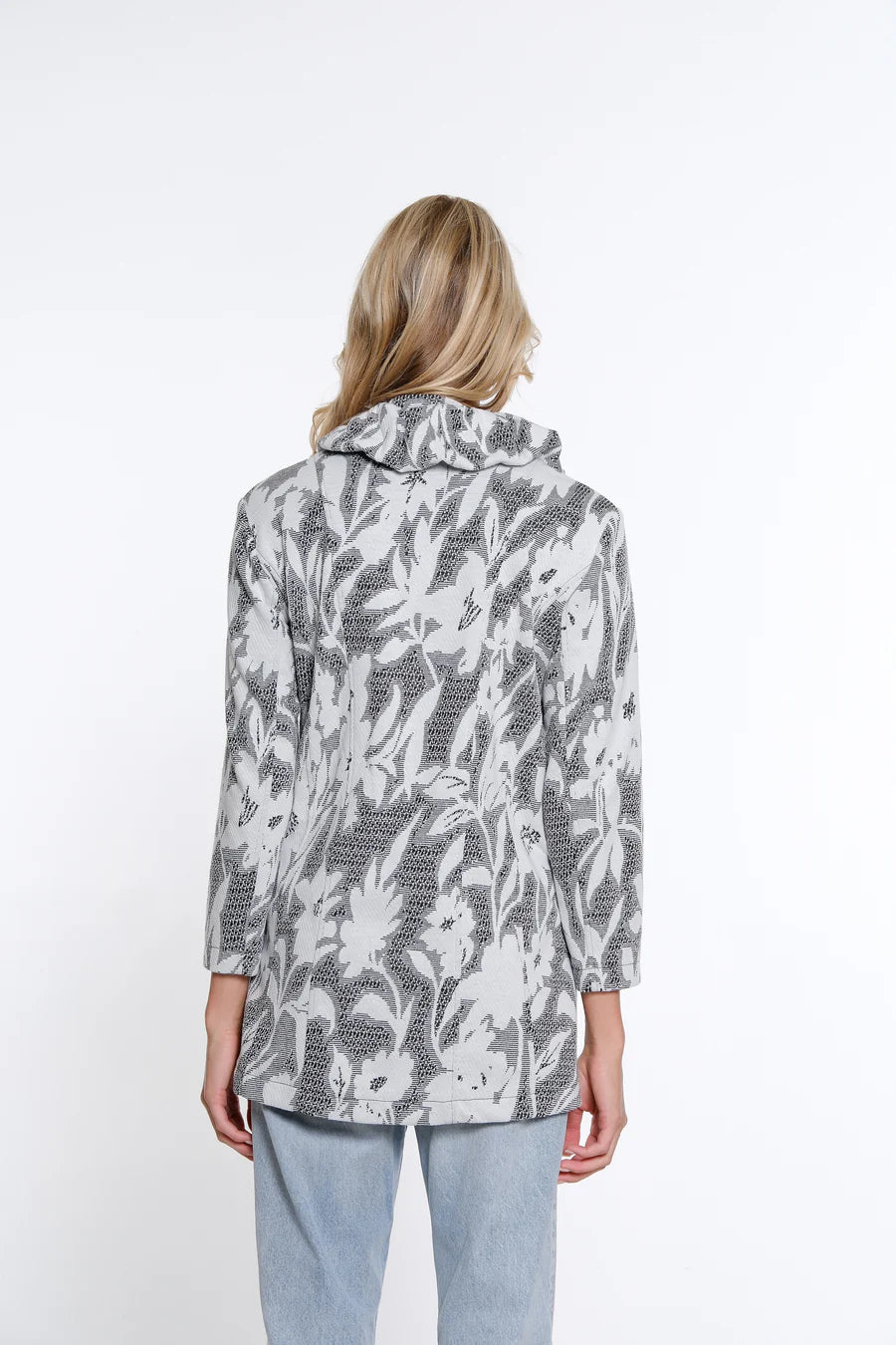Multiples 3/4 Flounce Sleeve 2 Pocket Peplum Jacket Denim Print
