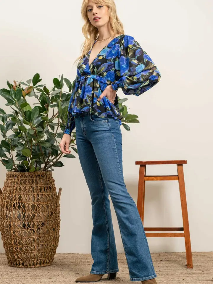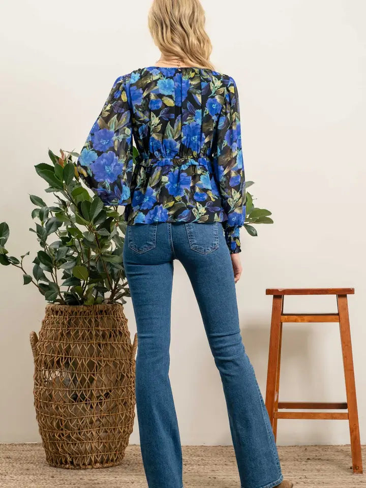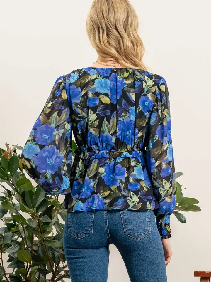 Lovestitch Floral Long Sleeve Surplice Blouse