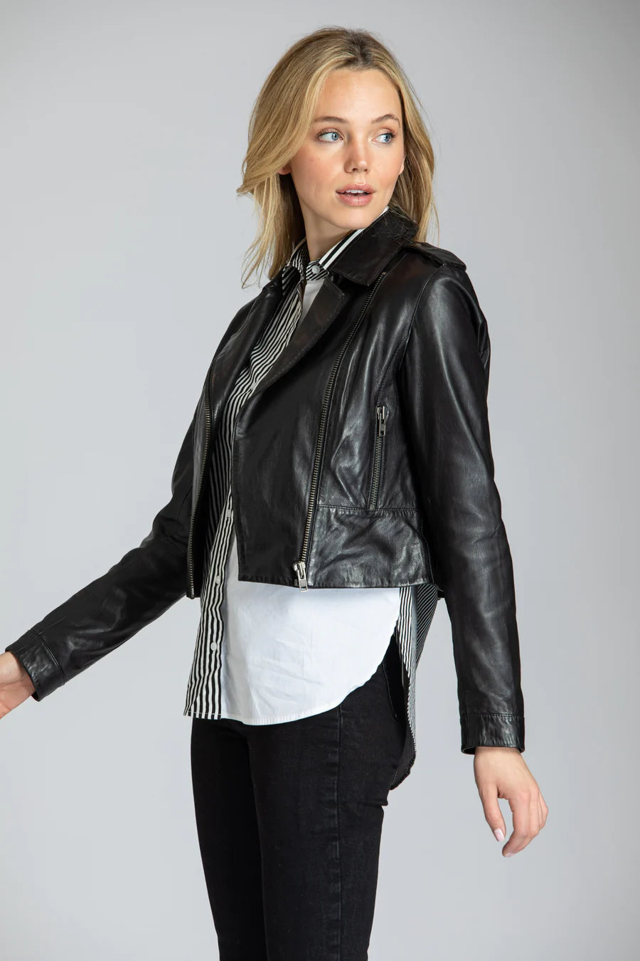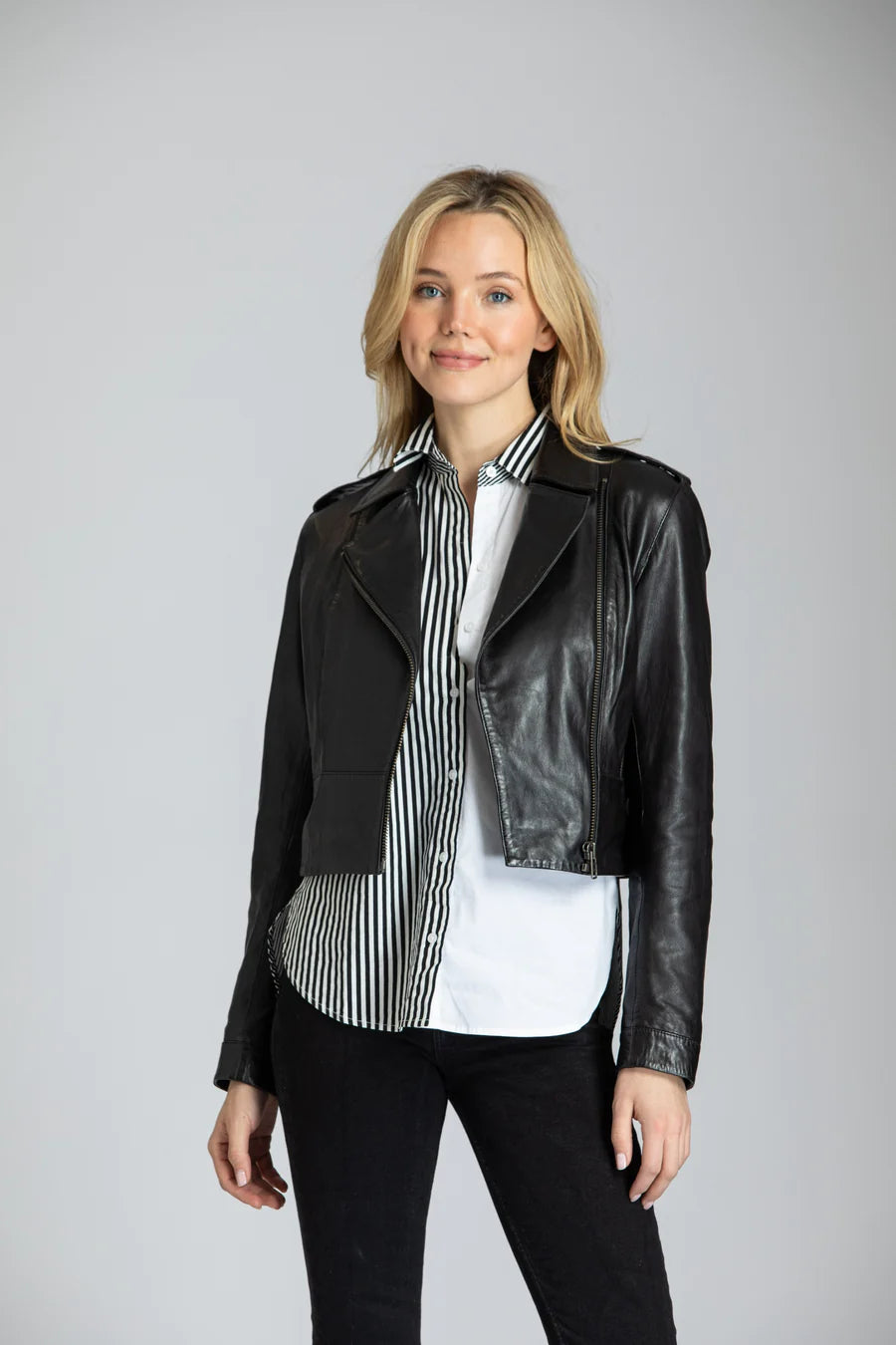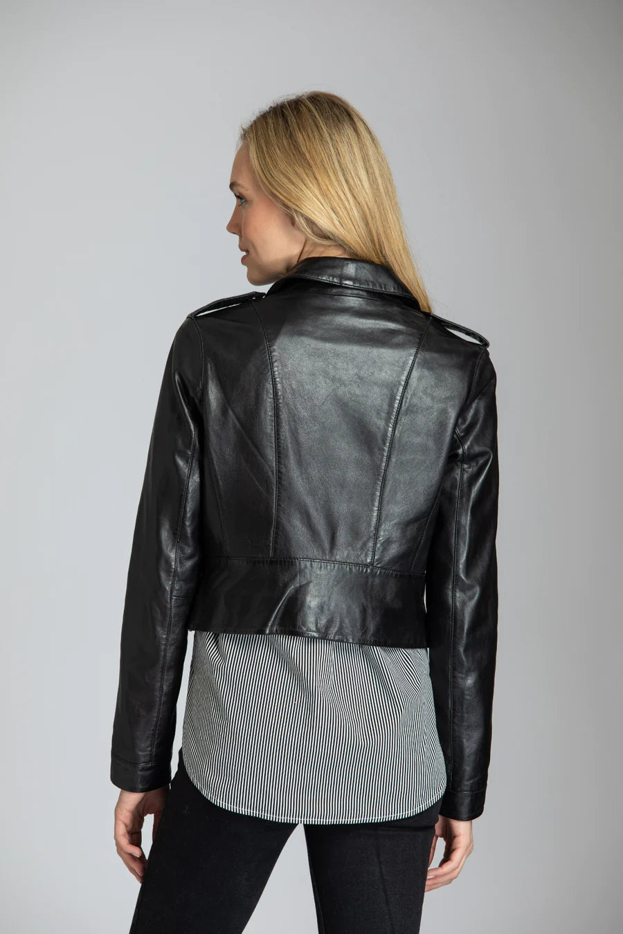 11 Uptown Cropped Washed & Waxed Leather Jacket Black