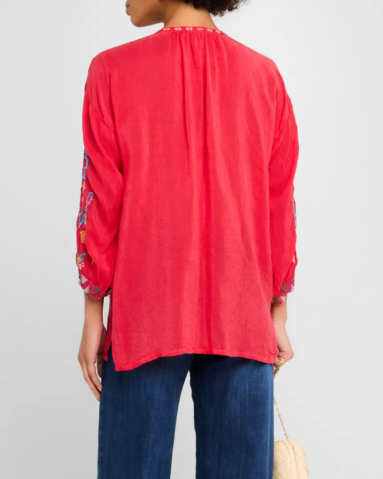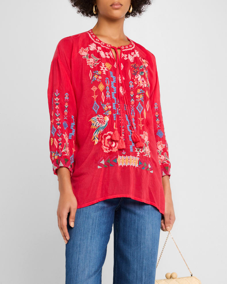 - Johnny Was "Margot" blouse with floral and geometric embroidery