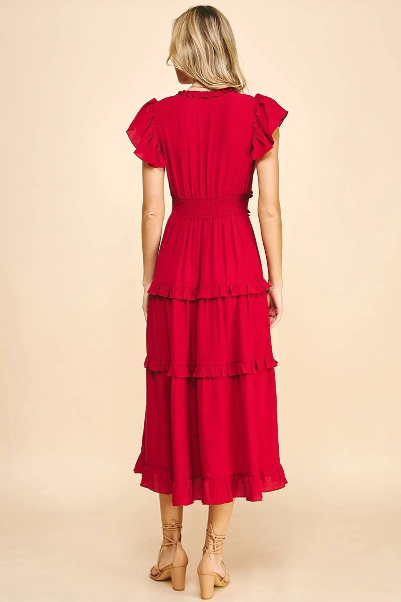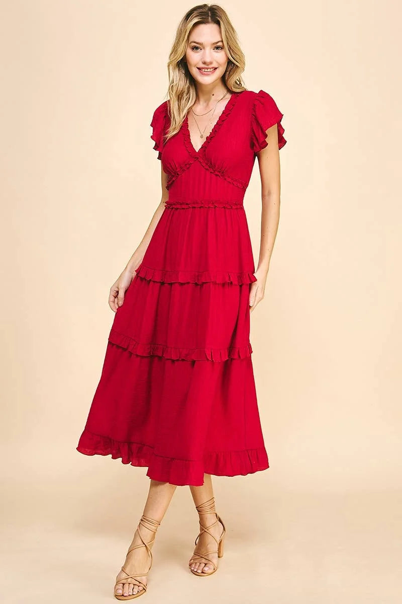 TIERED SMOCKED BACK WAISTBAND RUFFLE DETAILS UNLINED MODEL WEARS A SIZE SMALL