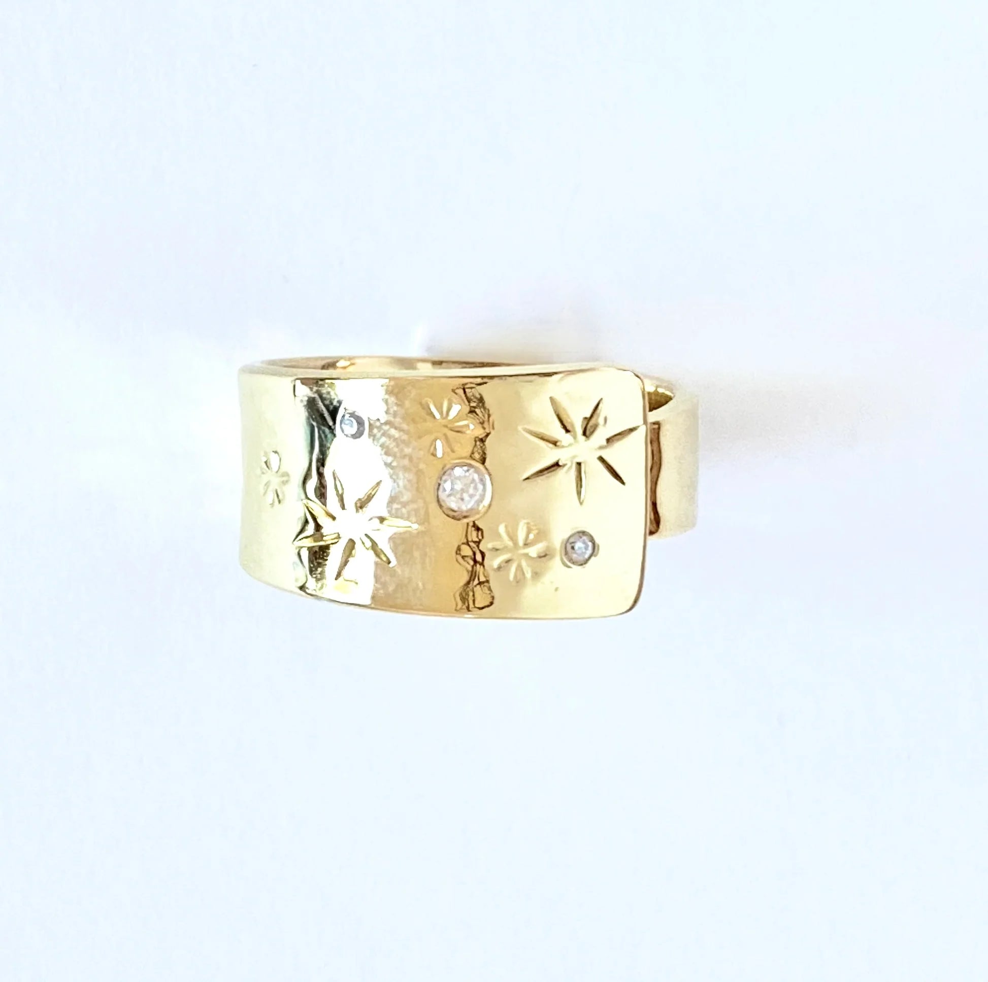 Ritual Wrap Around Brass Ring W/Stars & Clear Zirconia