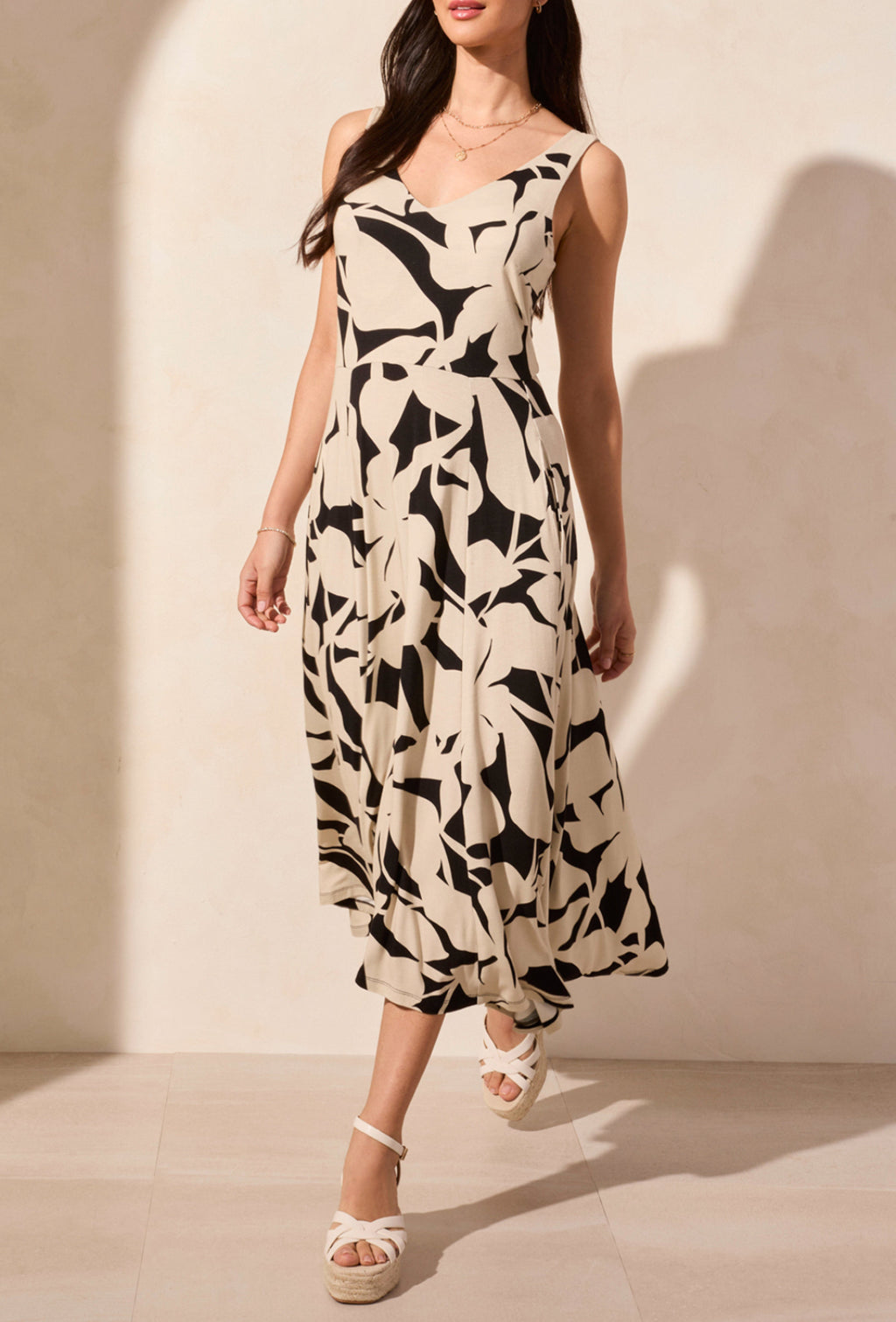 Tribal Sleeveless High Low Dress, Safari